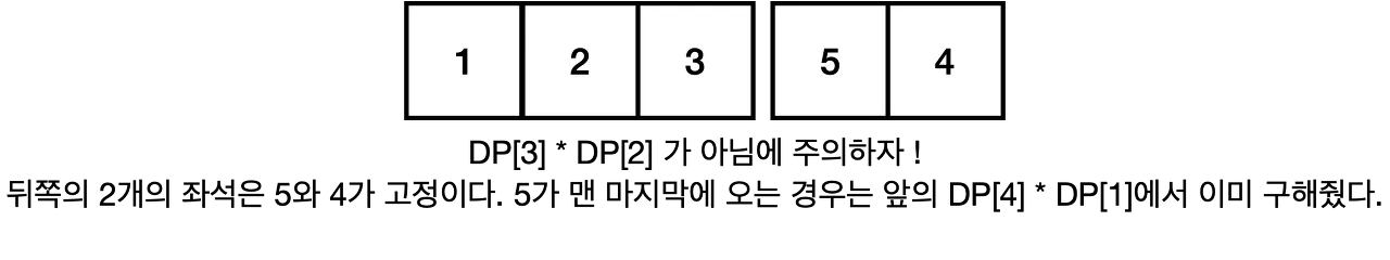 ์ ๊ฒฝ์ฐ๋ 5, 4๊ฐ ๊ณ ์ ์ด๋ผ์ DP[3] ๋