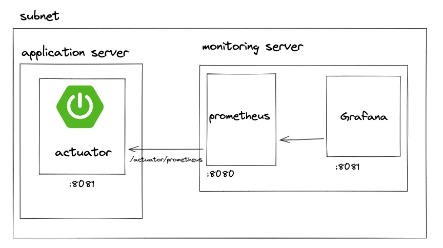 μ ν¬λ AWS μ t4g.micro λ₯Ό μ΄μ©ν΄μΌ νλ μλ² λ¦¬μμ€ μ νμ΄ μμμ΅λλ€. ν΄λΉ μΈμ€ν΄μ€λ 1GB λ©λͺ¨λ¦¬λ₯Ό κ°μ§κΈ°λλ¬Έμ WAS, prometheus, grafana λ₯Ό λͺ¨λ νλμ μλ²μ λμ°κΈ°λ νλ€μμ΅λλ€. κ·Έλ λ€κ³ WAS, prometheus, grafana λ₯Ό κ°κ°μ μΈμ€ν΄μ€λ‘ λμ°λ κ²λ λΆκ°λ₯νμ΅λλ€. κ·Έ μ΄μ λ‘, νμ©λ μΈλ°μ΄λ κ·μΉμ΄ 8080κ³Ό 8081 ν¬νΈλ°μ μμκΈ° λλ¬Έμ